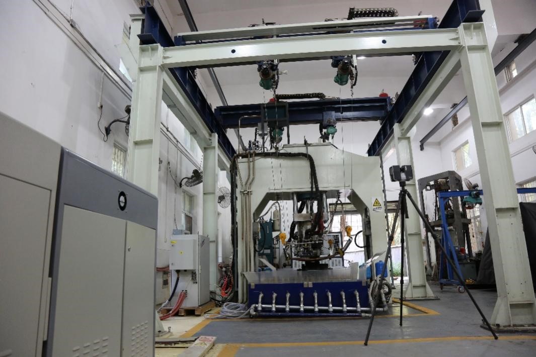 图为船舶复杂曲面板冷热一体成型样机