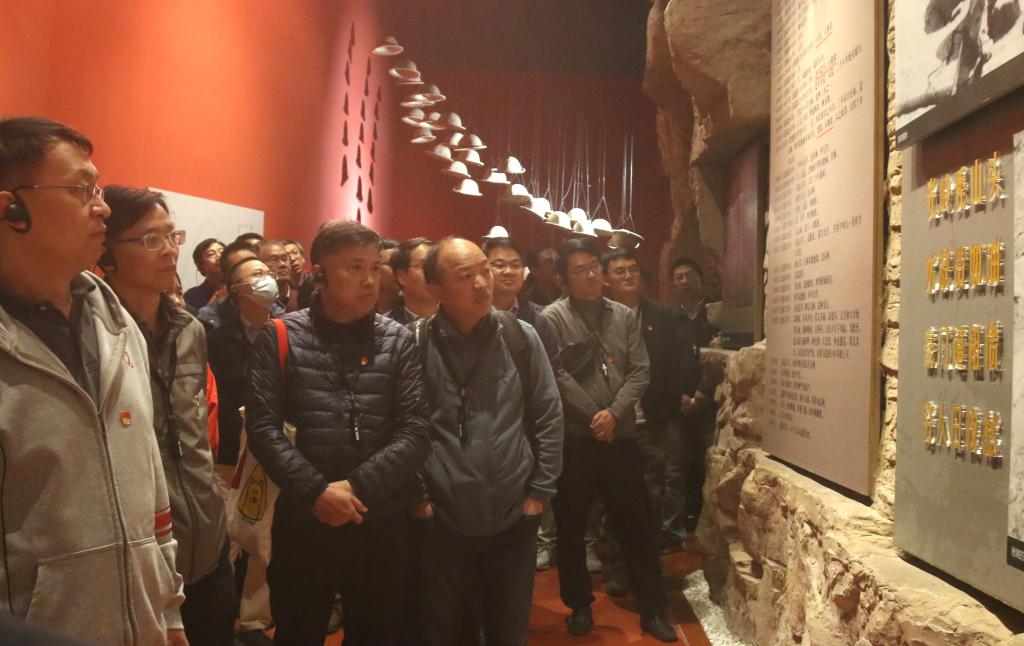 研学第一站是红旗渠纪念馆。整个展厅由千年旱魔、世代抗争;红旗引领、创造奇迹;英雄人民、太行丰碑;山河巨变、实现梦想;继往开来、精神永恒五个部分组成。通过讲解员的讲述,研学党员深入了解了红旗渠修建十年间的心血与汗水、艰辛与智慧。走出展馆后,大家一起参观了红旗渠分水闸和描绘红旗渠全貌的巨幅画作,充分感受红旗渠的宏伟壮阔。