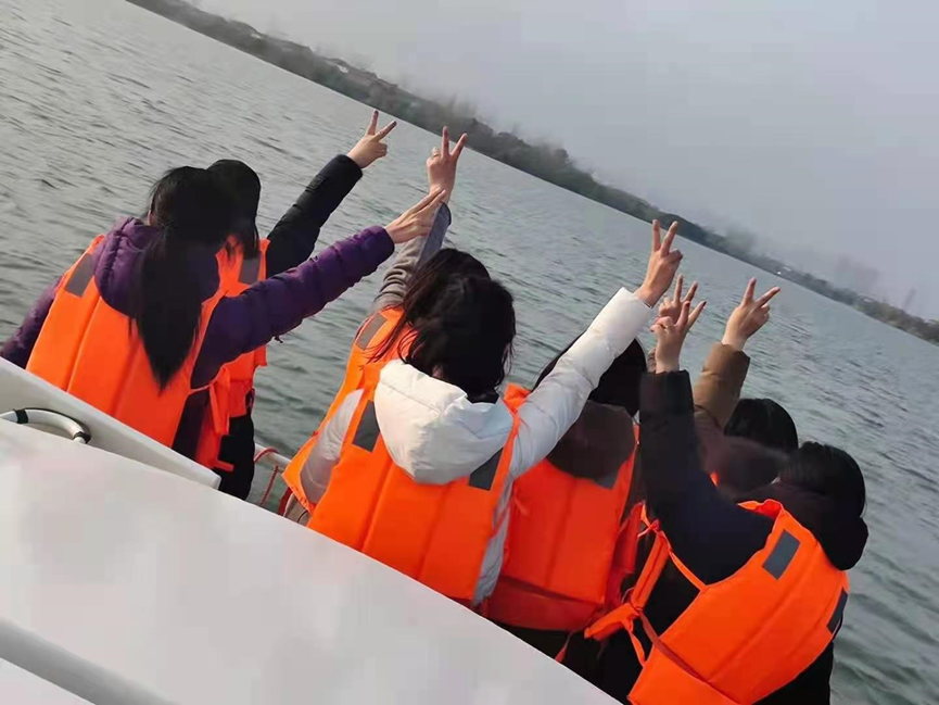 第三站,乘快艇游览考察后官湖。船海人乘风破浪,姐姐们英姿飒爽。大家拍照吹风的同时,也不忘聊聊阻力结构和生态环保,不管在哪里,船海人都不忘使命。