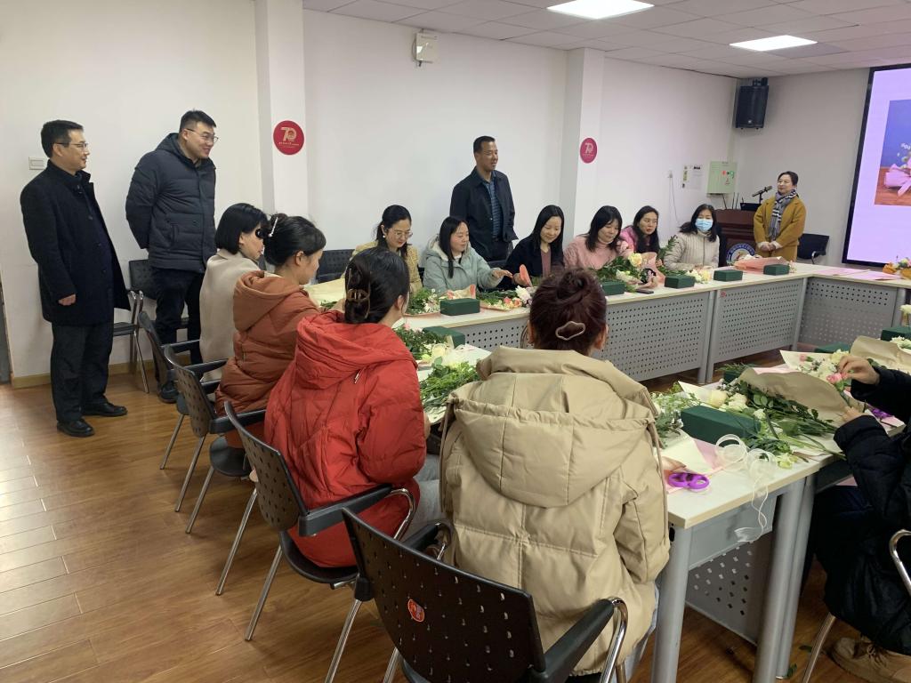 春暖三月,花开有期。为庆祝第114个“三八”国际妇女节,3月7日下午,船海学院工会组织全体女教工开展“春暖三月,诗情花意”艺术插花活动。