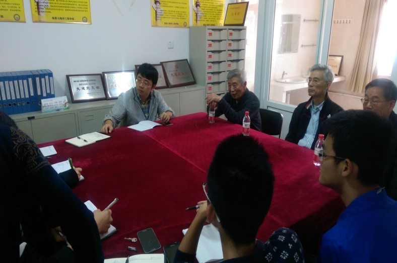 2016年10-11月间,14级学生党支部与退休党支部联系,组织学生到刘启国、王智发、陆正福等老教师家中访问。访談中,刘老师介绍了同届学友在船厂、研究所服务军工的业绩,特别讲到1963年在北海舰队实习经历:“当我们从舰长口中听到将士们多么期盼能驾驶中国自已建造的舰船去保卫祖国海疆时,我们就立下了誓愿,一定要努力学习,让‘建设一支強大的海军’在我们这代人手中实现!”,他勉励大家:船舶与海洋工程这门专业,与国防和国民经济紧密相连,是国家的急需,要在大学四年勤奋学习,掌握基础知识,锤炼各种能力,为強国強军貢献毕生精力!