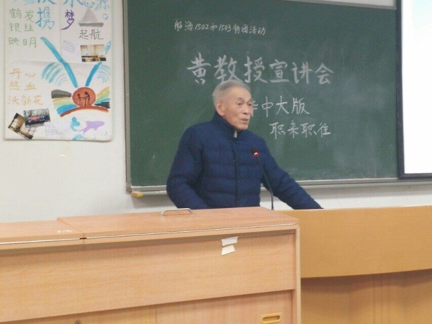 活动持续近2小时,黄教授激情满怀的演讲深深打动了每一个同学,船海1502班陈赏同学向黄老教授献上歌曲《老师》,“你给我一句话,就打开我一扇窗,你给我一个微笑,我就浑身是力量……”。