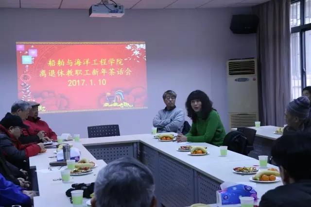 1月10日,船舶与海洋工程学院离退休教职工新年茶话会于东二楼会议室举行,退休老教师刘启国主持。学院党委书记萧莉,院长解德,副院长李维嘉及离退休教职工出席茶话会。