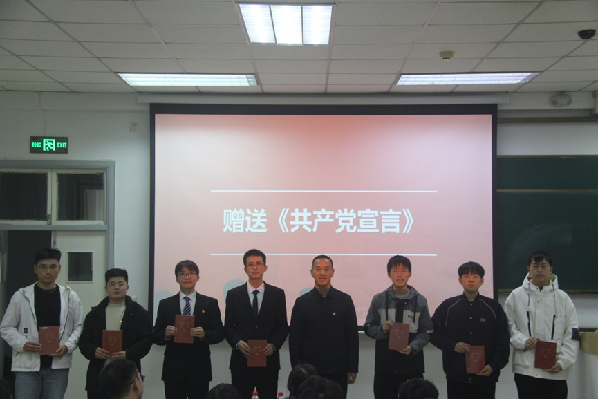 表彰优秀学员,树立学习榜样。李周密宣读分党校表彰决定,顾国强为优秀学员赠送《共产党宣言》。发展对象代表汪训铭、党支部书记代表鱼淏依次发言,结合自身学习实践,勉励同学们加强理论学习,坚定理想信念、强化服务意识,发挥模范作用。