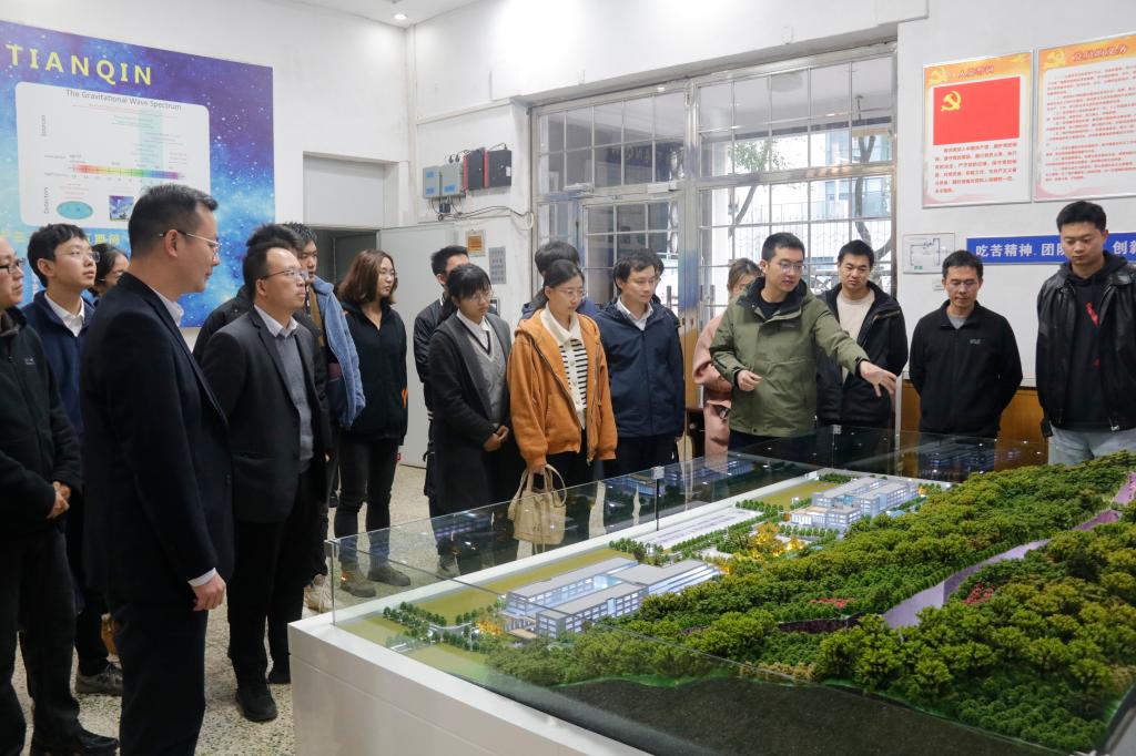 活动最后,船海学院团委书记杨冰带领七〇一研究所的青年博士人才参观了精密重力测量研究设施中的山洞实验室。精密重力测量研究设施2018年开工建设,是我国“十二五”规划建设的重大科技基础设施项目,依托主体为华中科技大学物理学院引力中心,主要建设内容包括重力测量基准和物理仿真两大平台,为地球系统与环境科学以及基础物理等多学科前沿领域的科学研究提供强大支持。引力中心团队的主要研究内容为测地观天,中心的伍文杰老师向青年博士们介绍了引力中心的布局,引力波探测的相关内容以及针对万有引力公式的三个精密测量研究内容,并参观了多个实验室,在轻松活泼的氛围中,活动圆满结束。