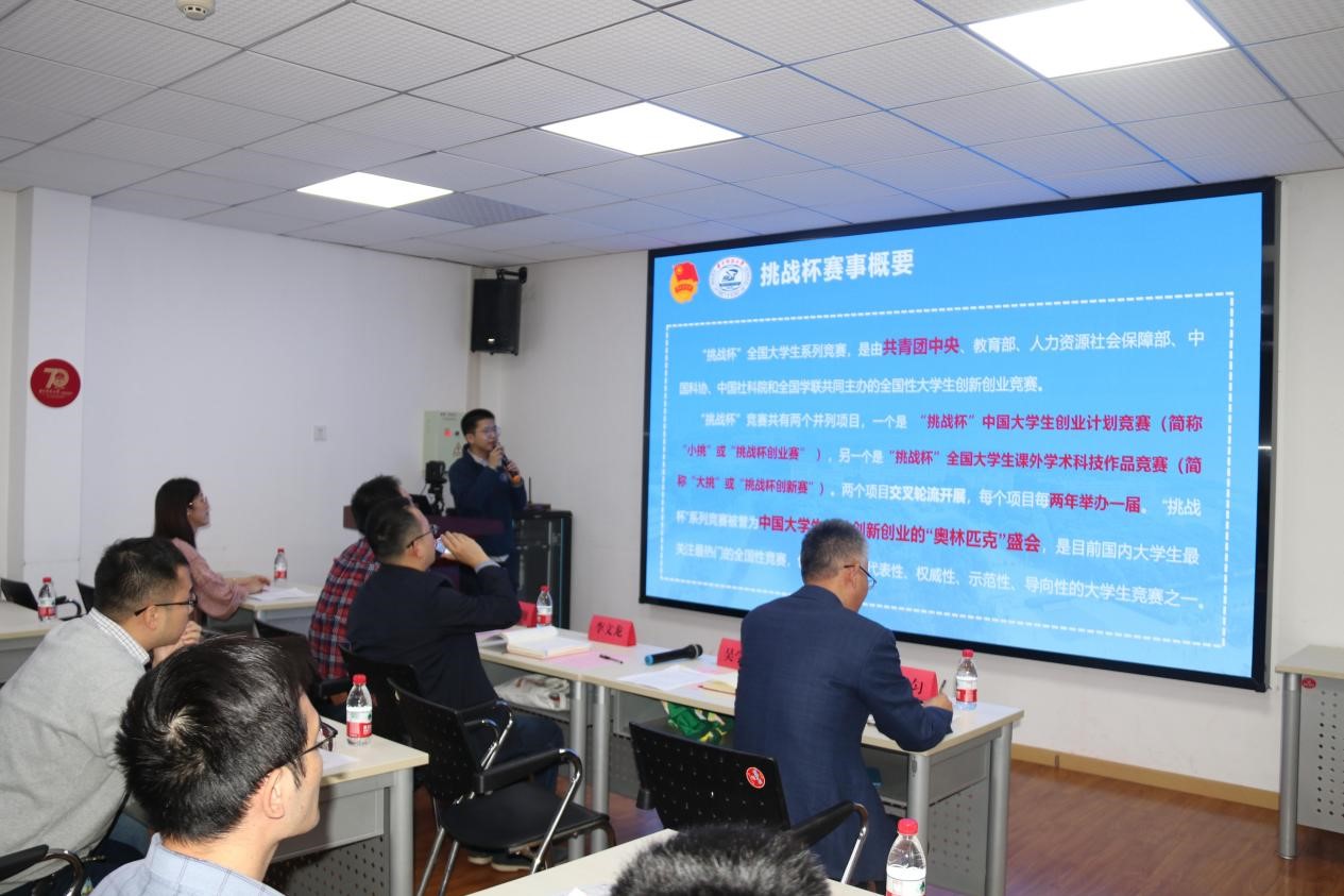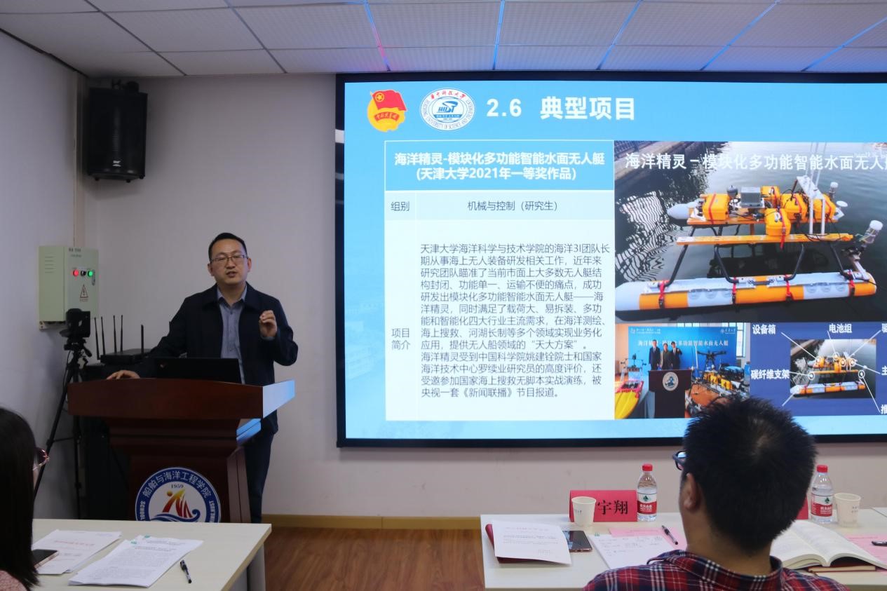 会上校团委吴学兵为大家介绍了挑战杯竞赛,他从参赛资格、作品类别、评审程序、典型项目等四个方面向与会师生详实生动的介绍了挑战杯各项赛事具体情况,同时介绍了我校获奖情况及部分获奖项目,让船海学院师生对挑战杯赛事有了更深刻直接的认识。