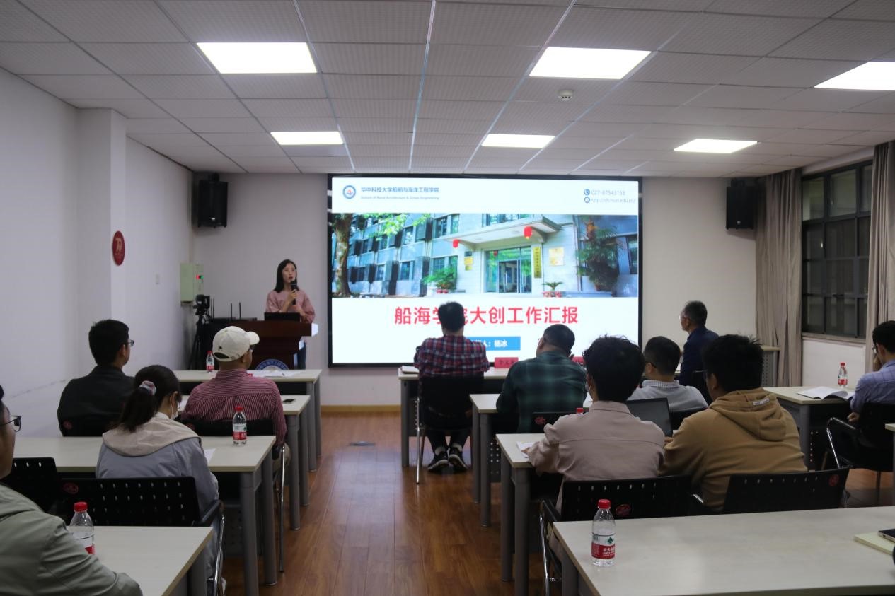 杨冰就船海学院科创工作做了汇报,从学院科协情况,院级各项科创赛事,参与全国海洋航行器设计与制作大赛情况,以及参与科创的信息途径等四个方面对船海学院近几年的学生科创情况进行了梳理,介绍了船海学院大创的一些成果及需要改进的地方。