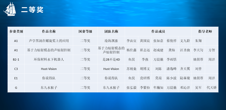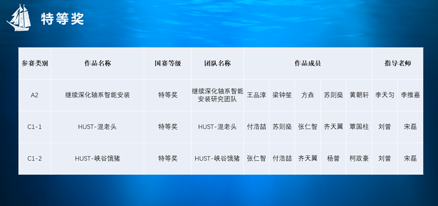 以我院师生为主体的华中科技大学代表队在第十三届全国海洋航行器设计与制作大赛中再创佳绩:3项特等奖、4项一等奖、6项二等奖!