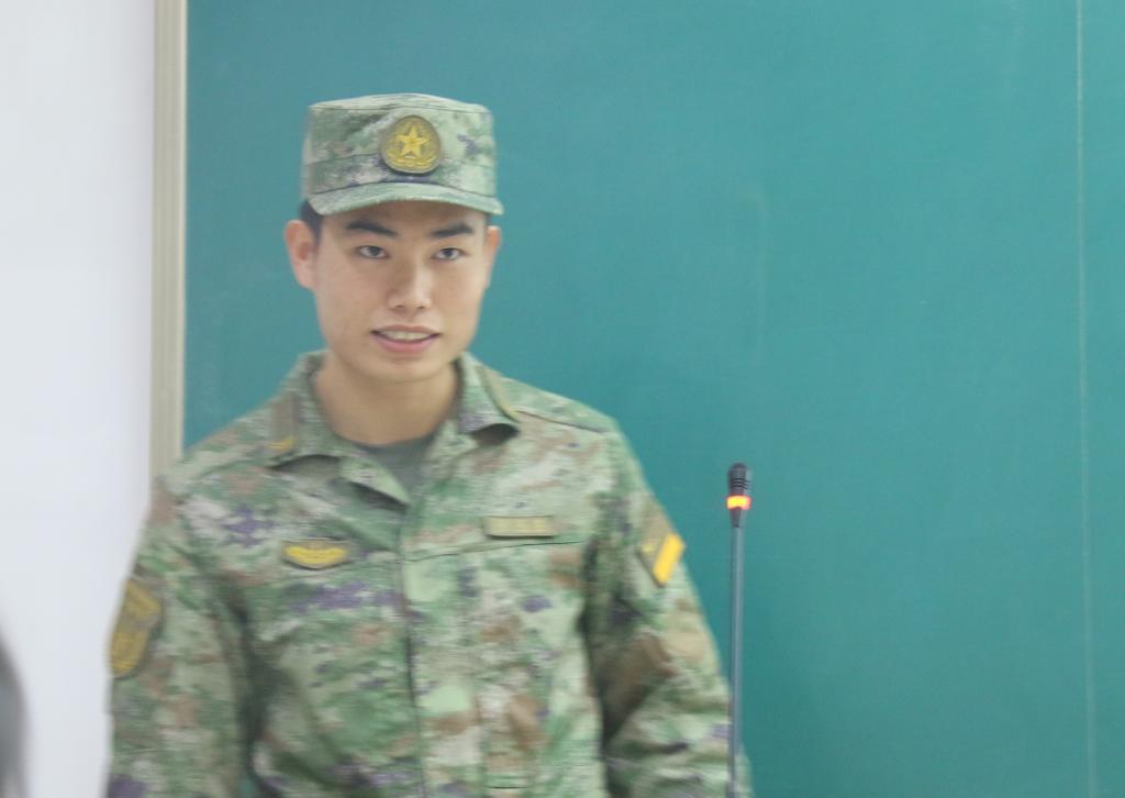 船海学院两位退伍大学生吴南磊、符昌君分别与同学们分享了自己的部队生活。他们通过视频和图片解说相结合的方式讲述了自己初入新兵连、营下生活和野外驻训等故事,结合自身经历分享了在部队锻炼两年的心得体会,鼓励同学们响应祖国号召,踊跃报名参军。