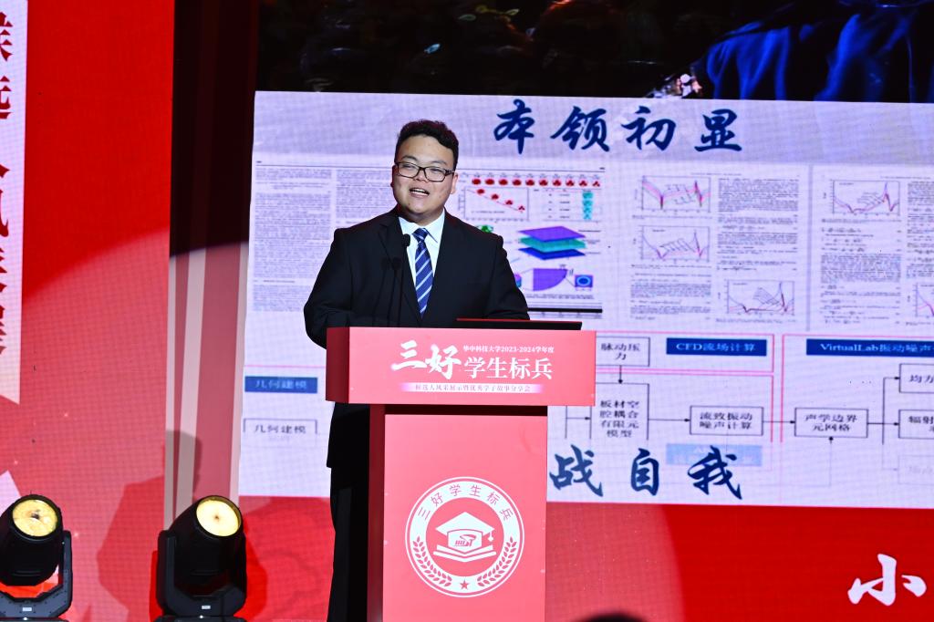 2024年10月24日,华中科技大学成功举办了2023-2024学年度“三好学生标兵”候选人风采展示暨优秀学子故事分享会。在此次评选中,我院船舶与海洋工程学院船卓2201班的杨仕鑫同学脱颖而出,荣获“三好学生标兵”称号。