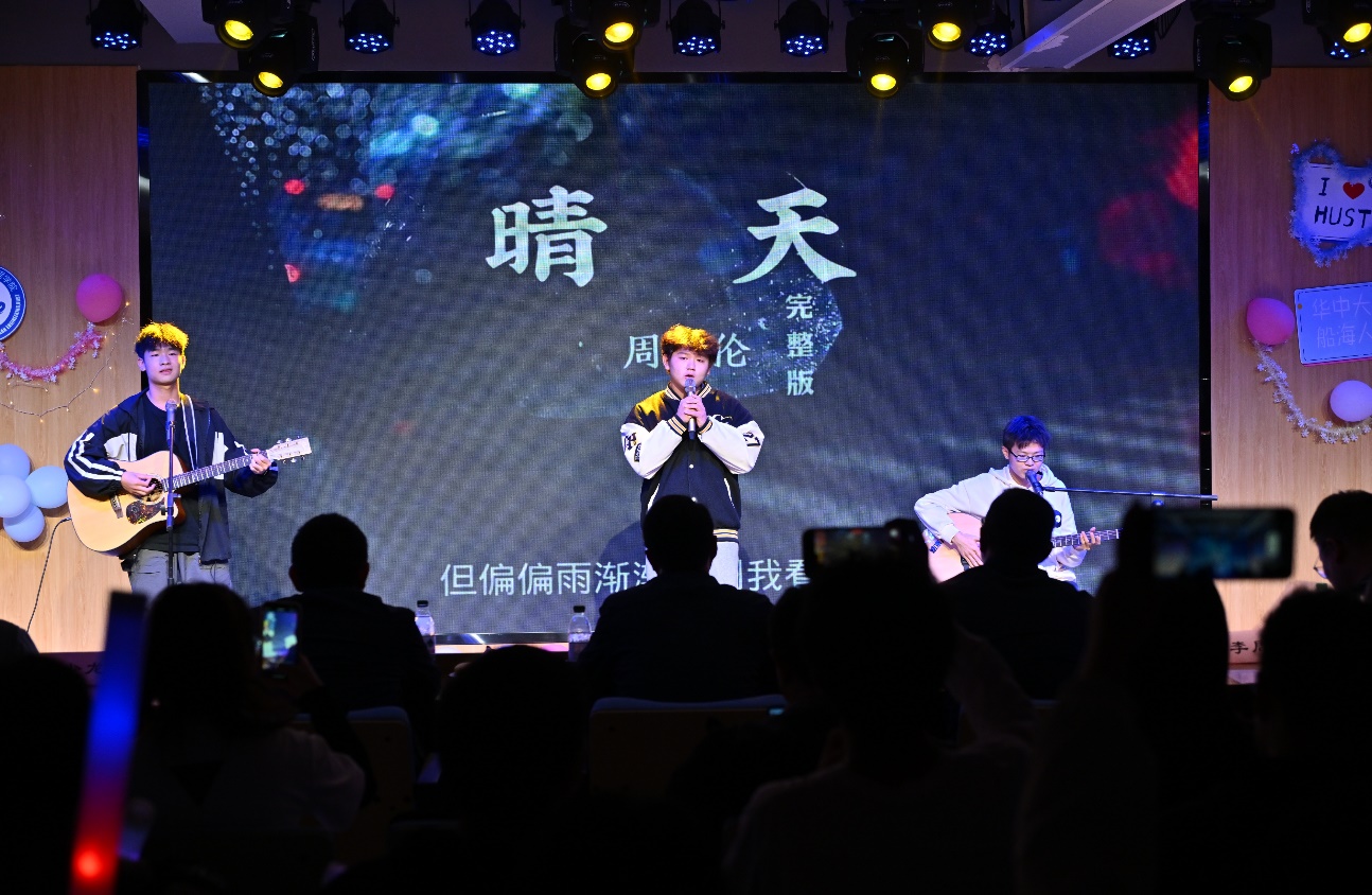 晚会由几首同学们带来的歌曲开场,第一首《勋章》演唱立刻点燃全场,《晴天》让人感受到了青春的纯真和遗憾,一首《男孩》,让我们回想起了成长道路上的种种,《我们的歌》让大家体会到了深深的同学情。一首《突然好想你》,也让人感觉到情感的起伏。随后研究生班主任们带来的《夜上海》,别具一格的风格给现场增添了更多的掌声和呐喊声。《Boogie Woogie + Tiger Rag》钢琴独奏使我们想象出爵士俱乐部中人们尽情享受音乐、跳舞的画面。乐器演奏《River flows in you》《Canon in D》帮助大家暂时平复心情,爵士说唱《关于小熊》也是让人眼前一亮,乐器弹唱《流沙》《程艾影》再次引爆全场,经典粤语歌曲《月半小夜曲》弹唱,《租购》演唱让现场观众再次回顾经典,最后的压轴戏乐队演出《你不是真正的快乐》,晚会在深刻的歌词和动人的旋律中落下帷幕。