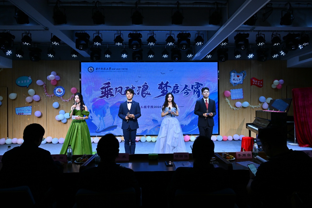 2024年11月11日,华中科技大学船舶与海洋工程学院2024级学生迎新晚会于紫菘学生活动中心3楼文艺展示厅顺利举行。我院党政班子领导,各班教师班主任,各年级辅导员出席本次活动。迎新之夜,才艺璀璨,24级同学们用才艺绽放光彩,为观众们带来一场视听盛宴。