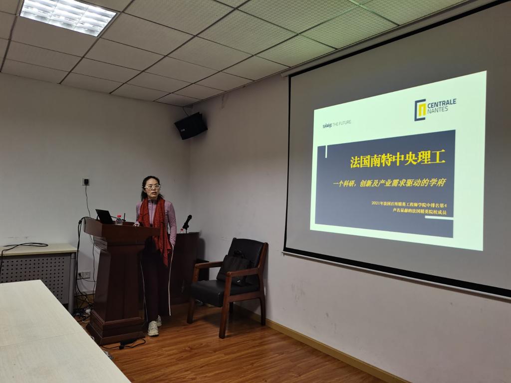 2021年10月19日晚,法国南特中央理工大学中法项目负责人李春来老师来访船舶与海洋工程学院,并在东二楼二楼会议室以“法国南特中央理工及船舶专业剪影”为主题,面向我院大三、大四年级本科生开展了国际化视野讲座。船海学院副院长向先波教授、辅导员靳丰富以及教师代表向巩副教授出席了本次讲座。